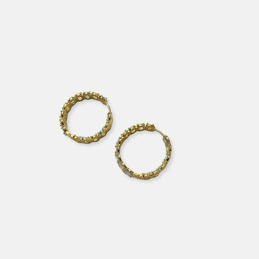 Cubic Zirconia Dual Tone Hoop Earrings-10051