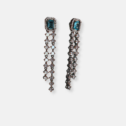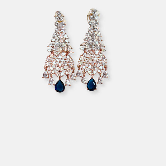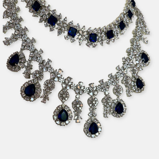 Double Layered Sapphire Rose Gold Plated Cubic Zirconia Necklace Set With Danglers