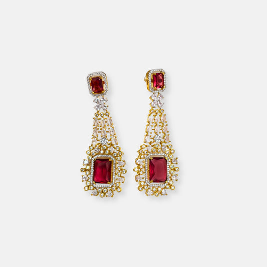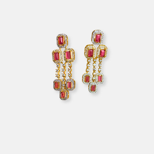 Cubic Zirconia Triple Layered Ruby Gold Plated Necklace Set