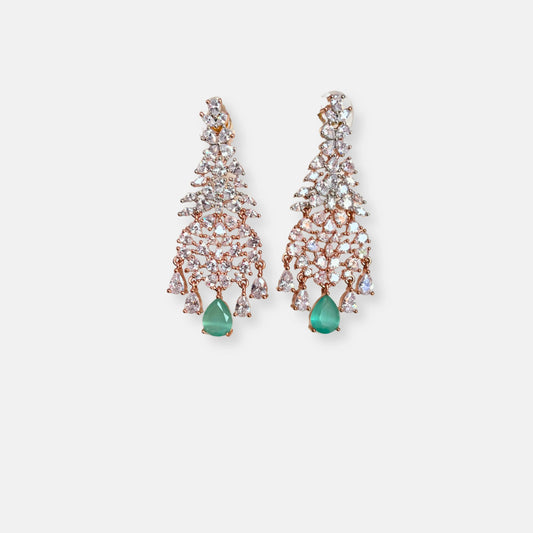 Double Layered Mint Stone Rose Gold Plated Cubic Zirconia Necklace Set