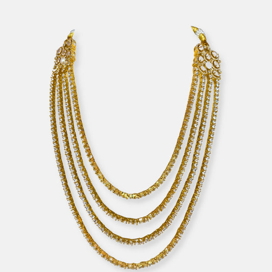 Quadruple Layered Gold Plated Cubic Zirconia Necklace Set With Pearl Detailing Earrings