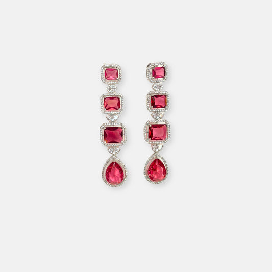Jewelit Triple Layered Ruby Stone Necklace Set With Drop Earrings