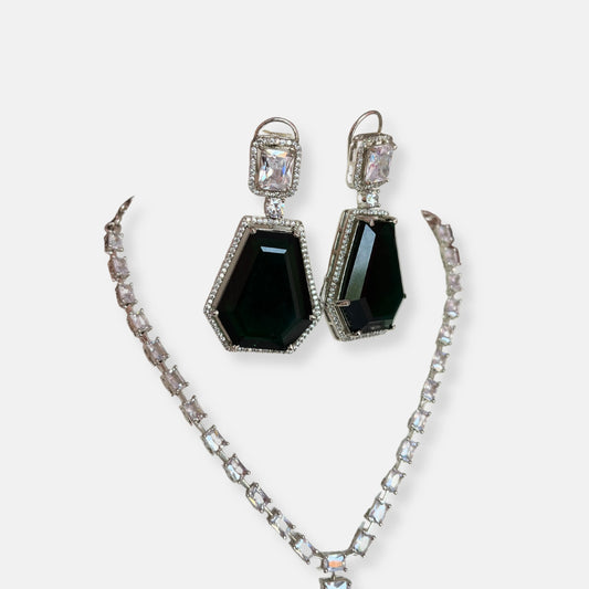 Jewelit Mint Stone Black Rose Gold Polish Cubic Zirconia Necklace Set
