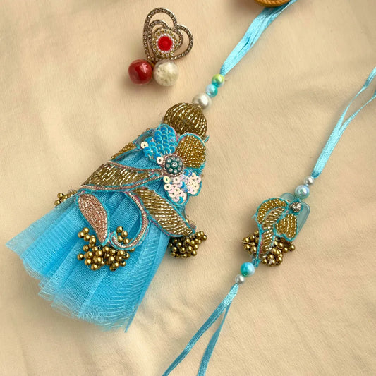 Zardosi Cutdana Lumba Rakhi Set