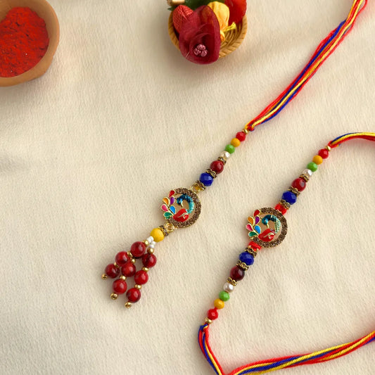 Peacock Bhaiya Bhabhi Lumba Rakhi Set