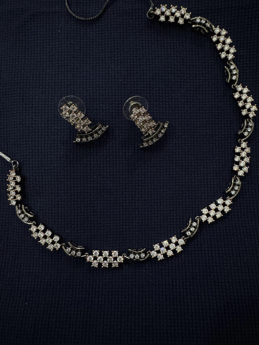 Cubic Zirconia Black Rose Plated Necklace Set 10027
