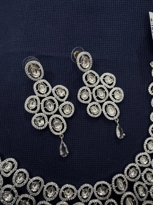 Cubic Zirconia Silver Plated Necklace Set 10021
