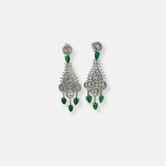 Classic Emerald Waterfall Cubic Zirconia Necklace Set With Danglers