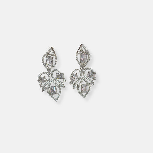 CZ Rhodium Plated Necklace Set With Earrings