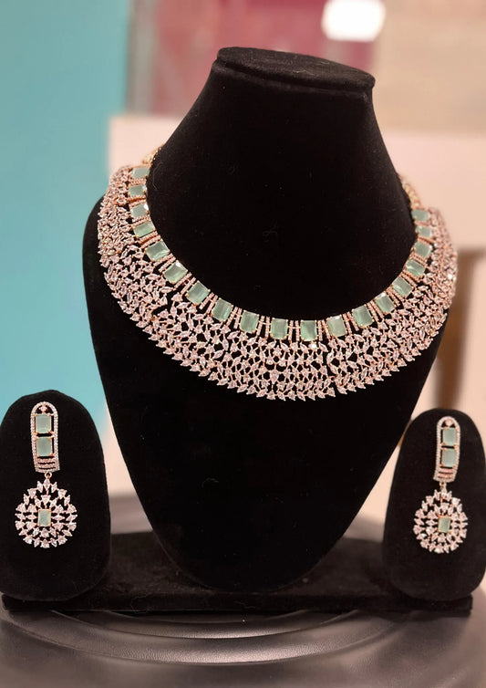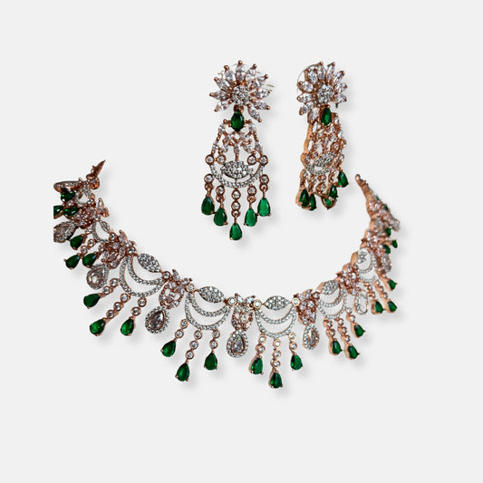 Cubic Zirconia Rose Plated Necklace Set 10028