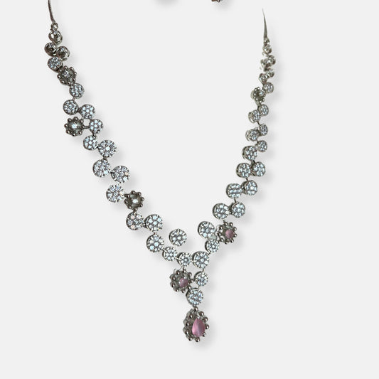 Cubic Zirconia Silver Plated Necklace Set 10019