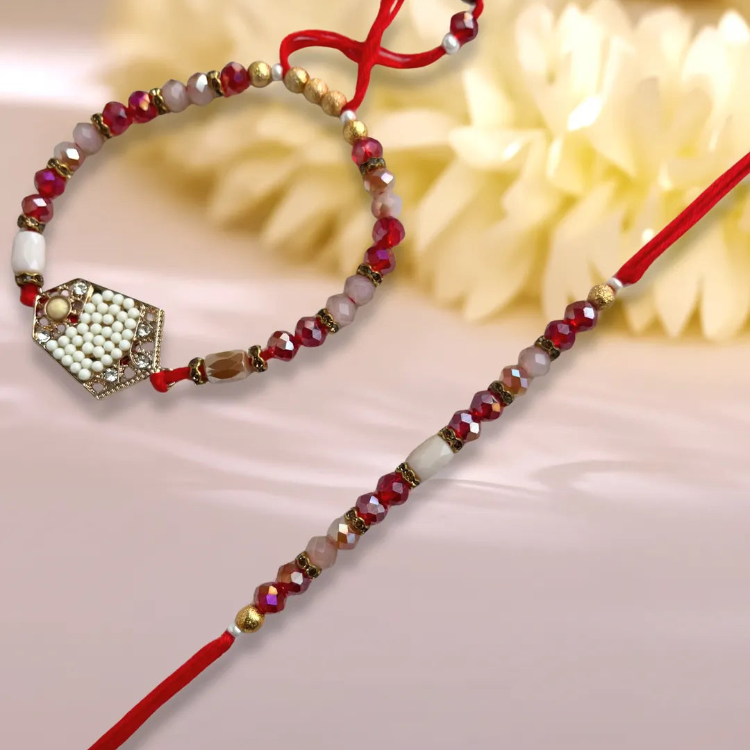 Bhaiya Bhabhi Braclet Lumba Set Crystal Beads Red Thread Rakhi