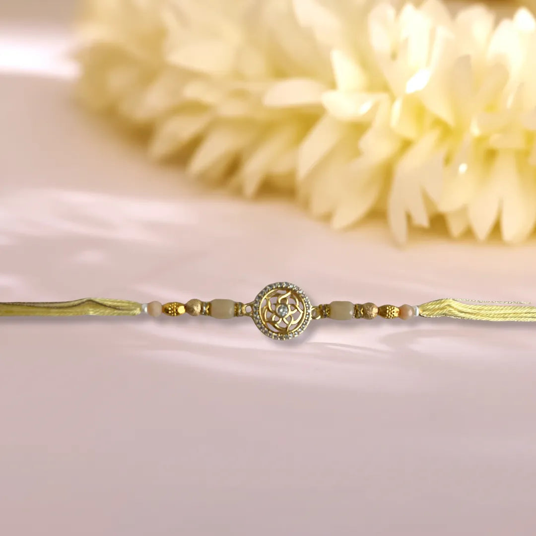 Circular Flower American Diamond Studded Pastel Thread Rakhi