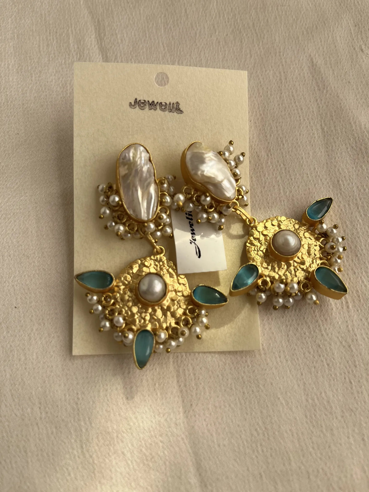 Elevate your style with these stunning contemporary earrings, designed to make a statement. Crafted with an 18K gold-plated finish, they feature a uniquely beautiful natural stone at their heart, adding a touch of earthy elegance. Accentuated with delicate pearl detailing, this piece perfectly balances modern design and timeless beauty. Whether you’re dressing up for a special occasion or adding a sophisticated touch to your everyday look, this necklace is the perfect blend of luxury and nature.