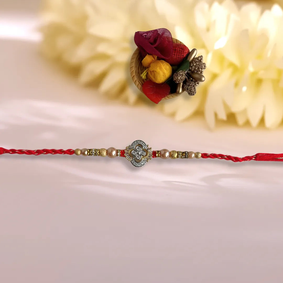 Celebrate the bond of sibling love with our exquisite American Diamond Fancy Rakhi. Featuring a stunning blend of white, silver, and cyan, this Rakhi symbolises purity, sophistication, and tranquillity. Its unique colour combination and elegant design make it perfect for the modern and stylish brother. The unique style and vibrant hues ensure it stands out, making it a truly special gift. Make this Raksha Bandhan memorable with our American Diamond Fancy Rakhi, a beautiful expression of love and protection.
