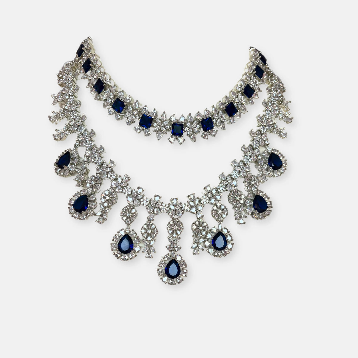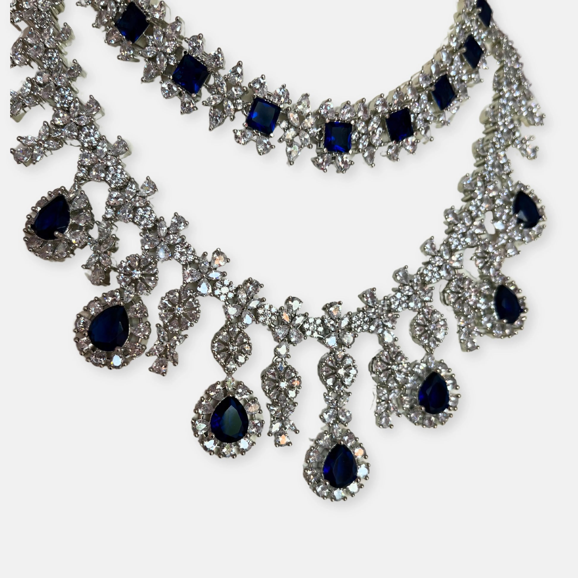 Jewelit Double Layered Sapphire Necklace Set With Earrings