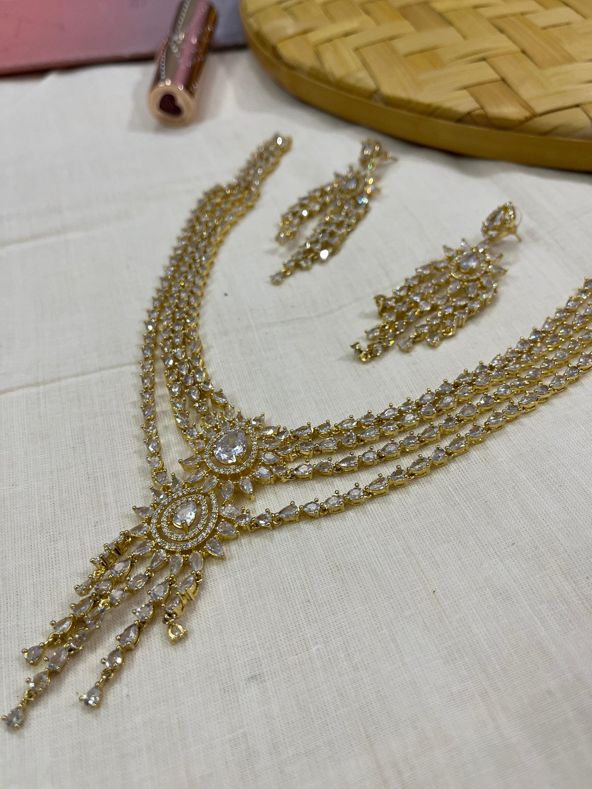 Our exquisite Cubic zirconia collection will make you shine all night long. Carefully crafted with brass, star cut cubic zirconia, and rhodium electroplating, these pieces add the perfect sparkle to any look. From cocktail parties to starry evenings to dazzling sangeets, our collection has everything to make you shine!